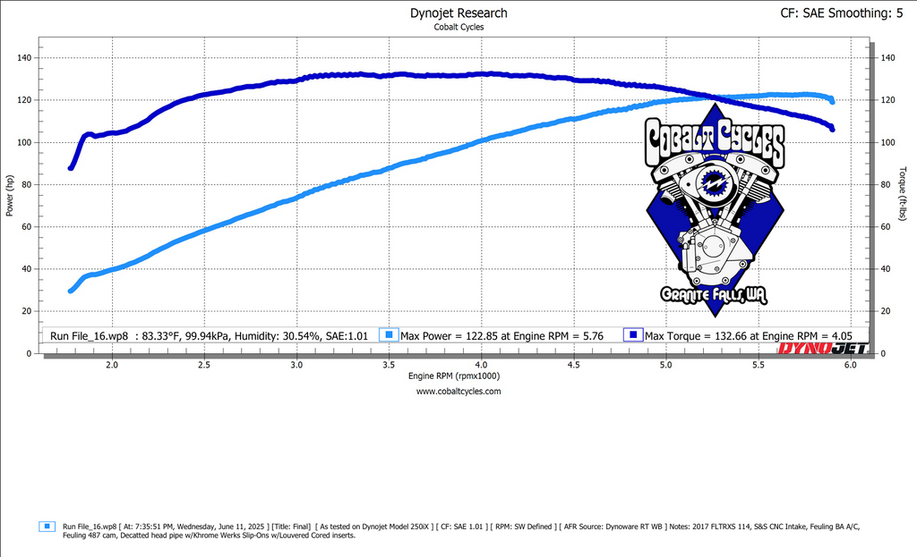 487 Reaper Chain Drive Camshaft, Cam Installation Kit and Race Series Lifters are included in this kit, 487 Reaper Camshaft, Bolt in, Chain Drive, 38? overlap, RPM range 2,250 - 6,1000, Camshaft for 114" and 117" engine, Responds very well to increased bore and or compression , Maintains bottom end power and pulls hard above 2,950 rpm when compared to stock, Cam specs measured on the lifter @ 0.050 lift with 1.61 rocker arm ratio., Cam Installation Kit, Includes cam bearing, cam/crank hardware and gasket/O-ring kit, Allows for installation of the factory one piece pushrods or optional Feuling? heavy duty HP+? 0.165 wall one piece pushrods, Race Series lifters, Hydraulic lifters have a full 0.200 of total travel, Designed with a slower bleed down rate to handle heavy valve spring pressures, Increase engine RPM before valve float and feature increased roller clearance for steep ramped camshafts and clearance for the Milwaukee Eight front exhaust camshaft lobe flange, Made in the USA, Heavy duty one piece pushrods are highly recommended., Feuling? fastener kit is recommended to help prevent cylinder head cracking., A high flow exhaust system and air cleaner is highly recommended for optimal performance., High Lift valve springs are required on stock cylinder heads, Screamin Eagle cylinder heads have high lift valve springs but will need to be verified., Feuling? does not recommend tuning beyond stock emissions standards.