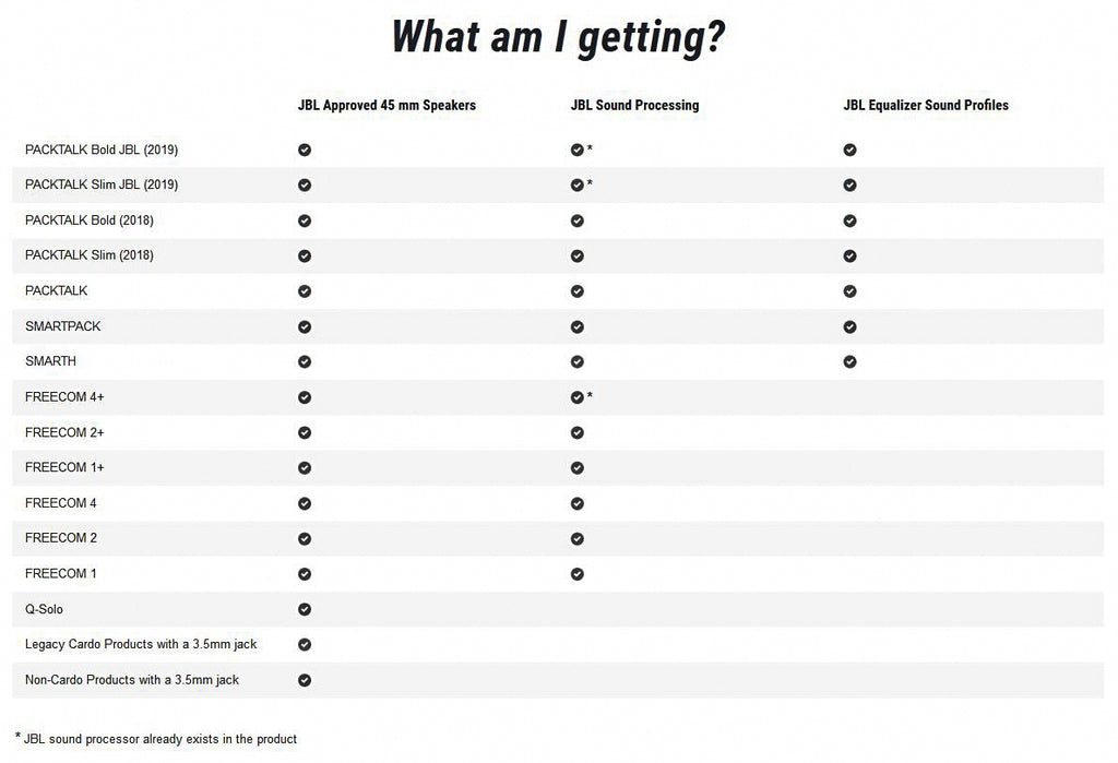 Upgrade to the ultimate sound experience with 45mm speaker set and matcing software. With a standard 3.5mm jack, these speakers fit practially any communicator on the market, no mater what brand. Owners of Cardo FREECOM and PACKTALK series will enjoy extra boost with the new JBL sound processor and firmware. Not a FREECOM or PACKTALK owner? No worries; this powerful hardware will still drive your headset audio performance to new heights.
