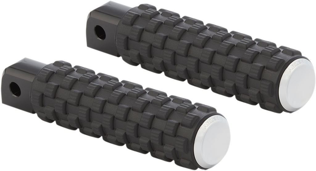 AirTrax footpegs for Indian models, Aggressive yet comfortable rubber design, Repeating pattern rubber offers excellent foot traction and vibration reduction, CNC machined billet end cap with laser engraved logo, 1" longer then stock for added comfort and foot room, Forged inner aluminum structure offers maximum strength with low weight