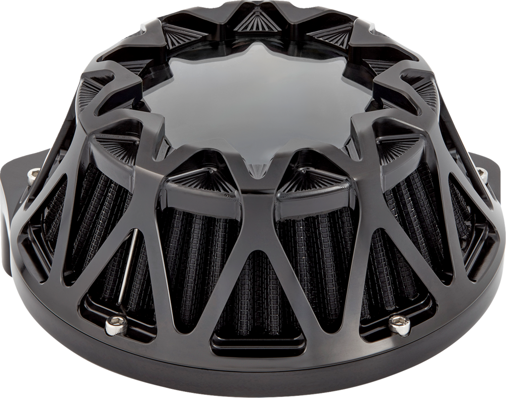 Features a polycarbonate window to view the internal working of the air intake system, High-performance black pre-oiled air filter is reusable and washable, Hidden breather backing plate technology, Reduced intake height for improved leg clearance, Breather design is O-ringed at the heads, passes through the backing plate and exits inside the mouth of the throttle body through the proprietary shooter tubes