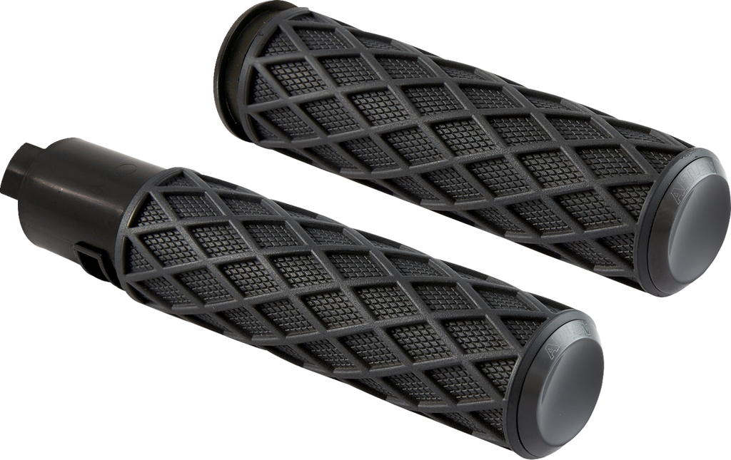 Diamond design rubber grips with integrated knurling inside each diamond shaped pocket for a vintage look with excellent hand traction , Premium rubber grip feels soft and comfortable feel in all riding scenarios and will not wear easily, CNC-machined end caps for a finished look, Arlen Ness laser logo included on each end cap , Installs like factory grips; no glue required for installation