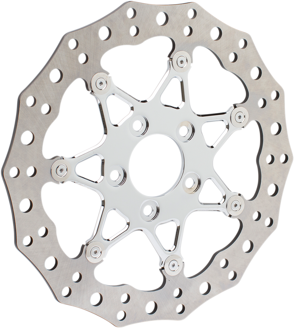 Designed to match Procross forged wheels , High performance floating brake rotors, Outer brake disc is made from 420 stainless steel, drilled and laser cut for optimum friction & durability, Inner carriers are CNC machined from aircraft quality billet aluminum, Will work with Arlen Ness?, factory and aftermarket wheels designed to accept 5-bolt hub mounted HD brake rotors