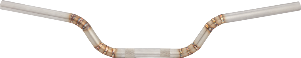 Handcrafted moto handlebars made from stainless steel tubing that is bent, cut and welded into an aggressive styled bar with a comfortable riding position, Hand finished for a unique look , Moto style handlebar provides an aggressive yet comfortable riding position , Made from 1" premium stainless steel tubing, 1" diameter knurled clamping area , Will work with both cable and throttle by wire throttle.
