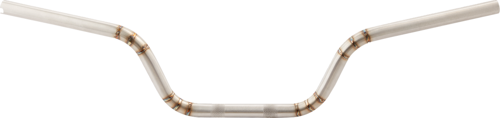 Handcrafted moto handlebars made from stainless steel tubing that is bent, cut and welded into an aggressive styled bar with a comfortable riding position, Hand finished for a unique look , Moto style handlebar provides an aggressive yet comfortable riding position , Made from 1" premium stainless steel tubing, 1" diameter knurled clamping area , Will work with both cable and throttle by wire throttle.