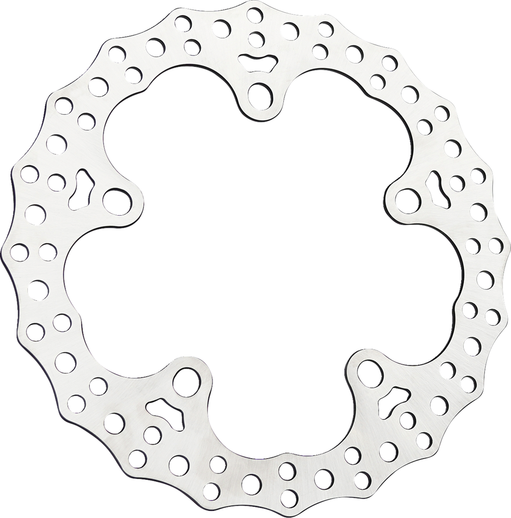 High performance floating brake rotors designed to enhance braking performance and style of factory wheels, 420 Stainless construction, drilled for optimum performance and heat dispersion, Accepts factory style brake rotor hardware, Made to endure the weight associated with V-Twin motorcycles