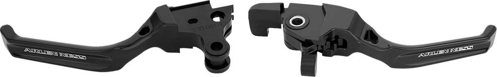 Forged hand levers feature a performance-inspired design with an ergonomic shape & shorty length, Each lever is shaped to enhance the feel & comfort of the hand controls , Backside of each lever is cut out for reduced weight, CNC machined from forged billet aluminum, then polished smooth for a sculpted smooth finish, Includes both throttle side & clutch side levers with laser-engraved Arlen Ness? logos