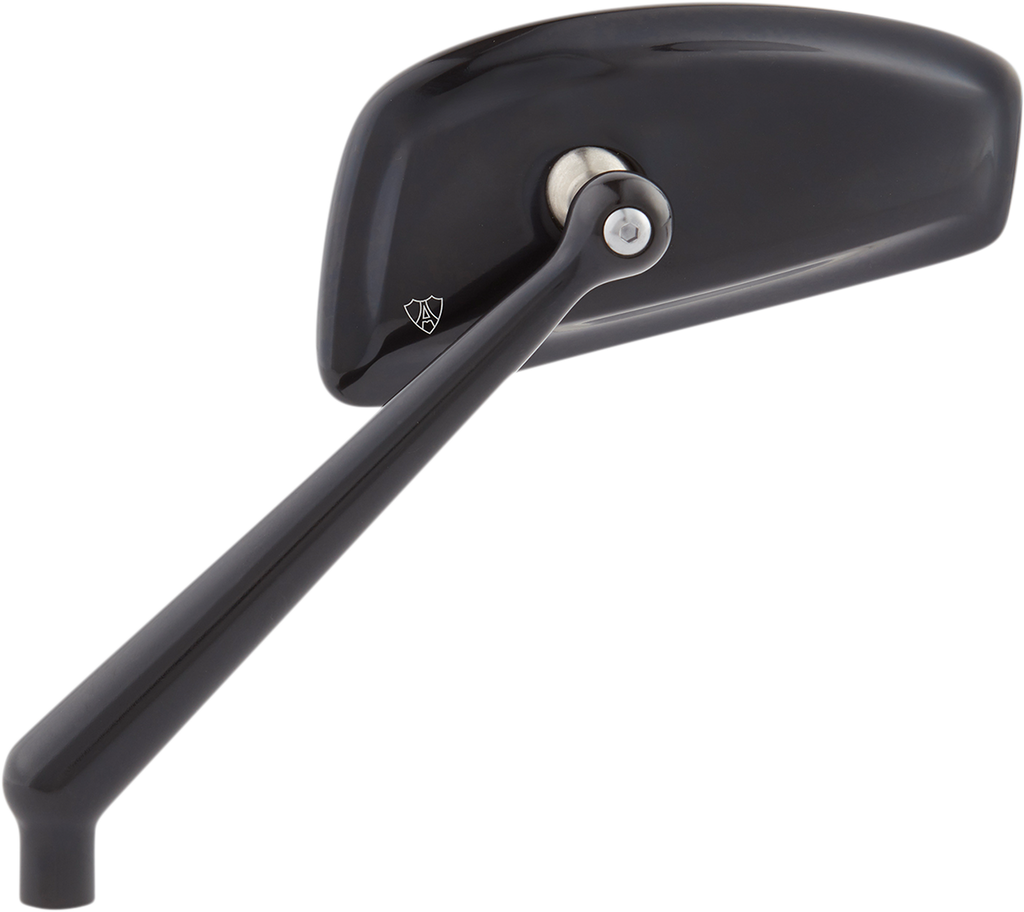 Smooth body lines and an angled outer shape for a mirror that flows with any style, Mirror head and stem forged from billet aluminum, Heavy duty stainless steel internal pivot hardware, Standard and metric mounting hardware included, A new take on the classic teardrop shape, Laser engraved Arlen Ness? logo