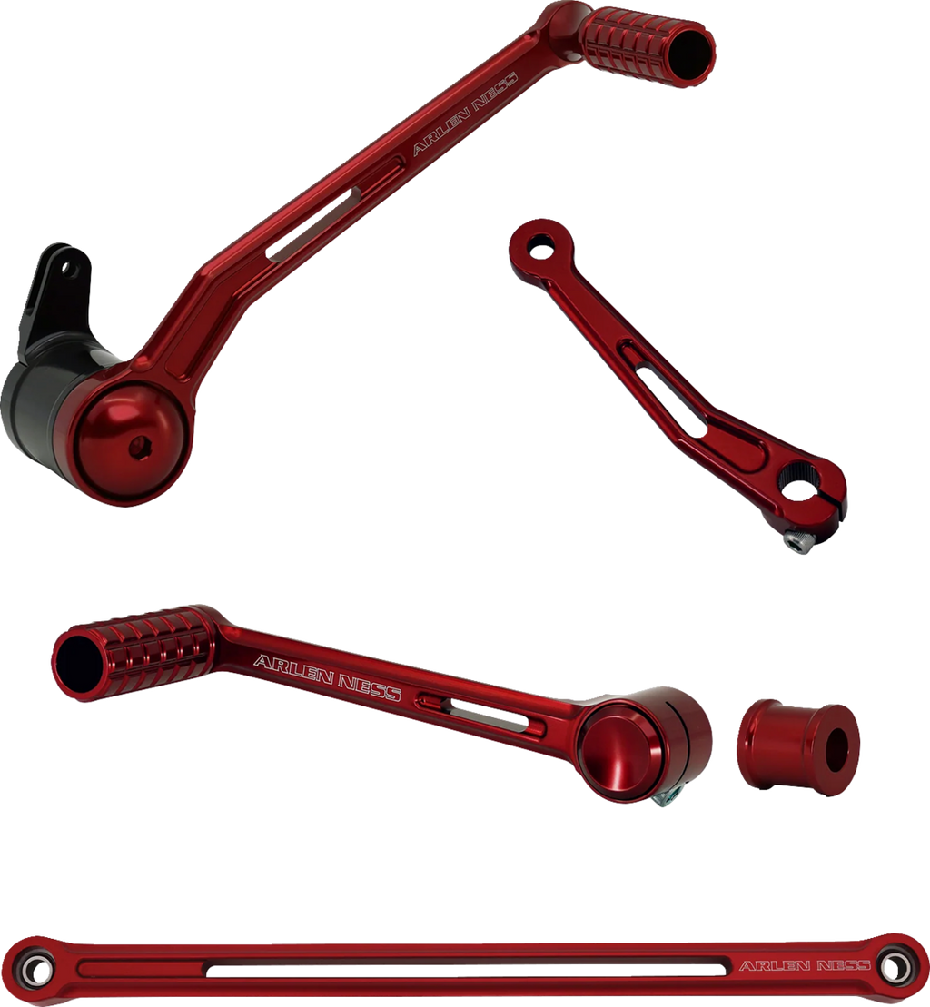 3D knurled billet design drastically enhances foot control styling while adding foot traction, CNC machined billet aluminum construction, Kit includes brake arm, shift rod, inner shift arm, & either a solo or heel/toe shifter with pegs, Shift rod features specially designed spherical bearings for an ultra-clean look, eliminating the need for heim joints