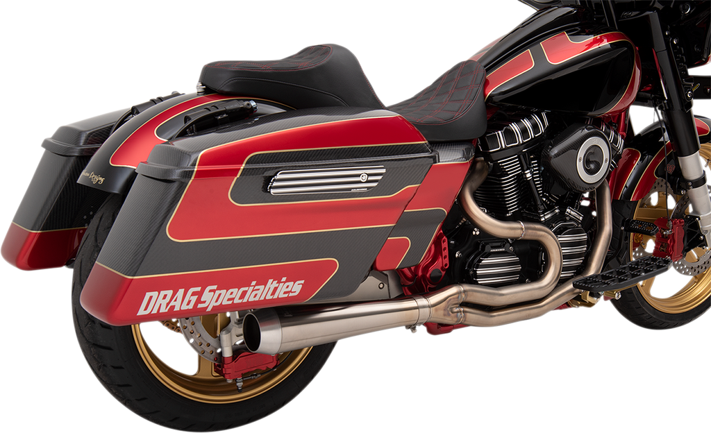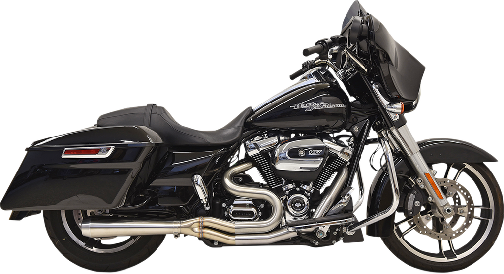 Features stepped, 1-3/4" to 1-7/8", equal-length headpipes designed for maximum performance, Included heat shields cover enough of the headpipes for heat protection but end inches from the collector to show off the stainless steel and hand TIG welding, Tapered, megaphone-style, short muffler body; system mounts off of transmission for that truly radical short look, System comes with 18 mm and 12 mm Oxygen ports with sensors, adapters and plugs, Includes removable baffle and end cap, Made in the U.S.A.