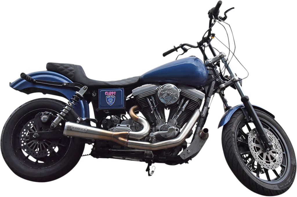 Design with a louder, more aggressive tone than the Shorty Road Rage exhaust system, Made with stepped headpieces 1-3/4" into 1-7/8", Fully welded one-piece design, 10" megaphone muffler with a removable louvered baffle that measures 10" x 2.25"