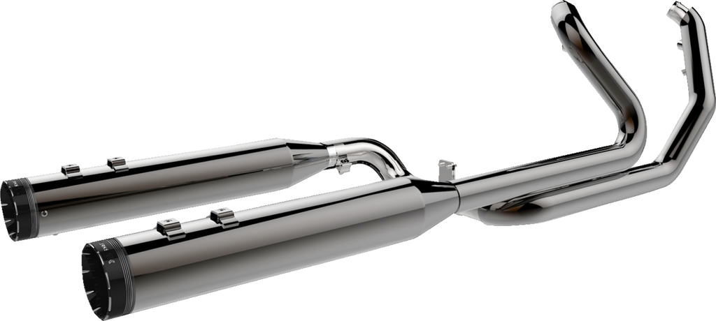 Engineered for performance, style, and sound, Improves torque and horsepower from stock to the largest displacement build, Removes OEM head pipe catalytic converter to reduce heat and improve rider comfort, 3-step head pipe (1-3/4" - 1-7/8" - 2"), 18 mm and 12 mm O2 bungs welded into header primaries for street-legal tuning or race-only applications, Heat shields with 220? coverage, 4-1/2" HP Plus compliant mufflers deliver Khrome Werks signature aggressive tone, End caps sold separately, Made in the USA
