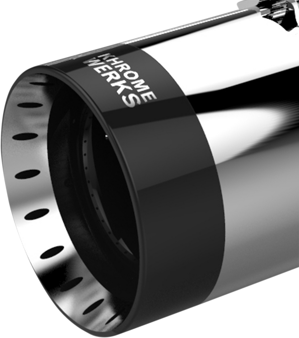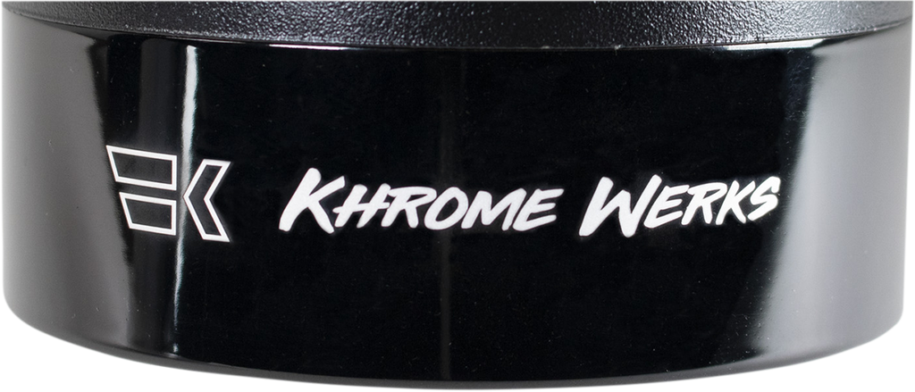 Can be rotated 360? at 90? increments, Nickel sealed and features a high-temp black powdercoated finish, Fits all 4-1/2" Khrome Werks mufflers that accept billet aluminum tips, Machined in U.S.A.